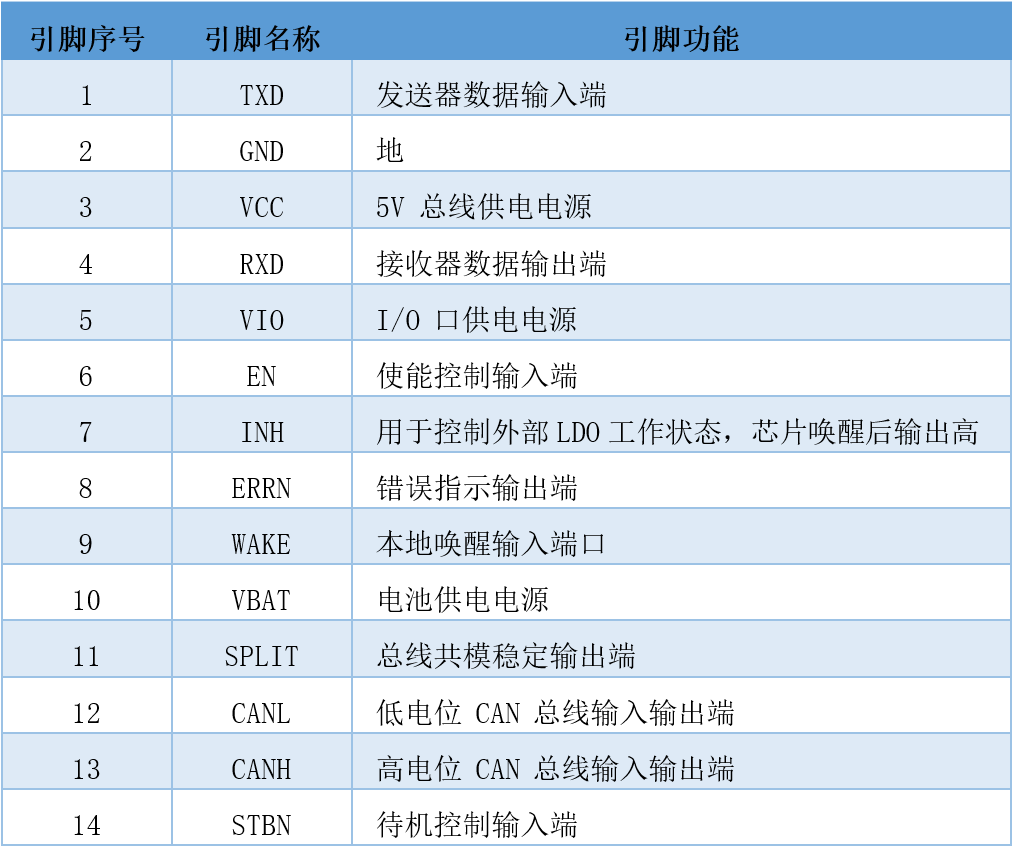 采用5V主供電VCC,VBAT輔助睡眠供電,支持IO口3.3V/5V 微處理器(MCU)直連,支持車(chē)載12V或 24V電源系統(tǒng)。