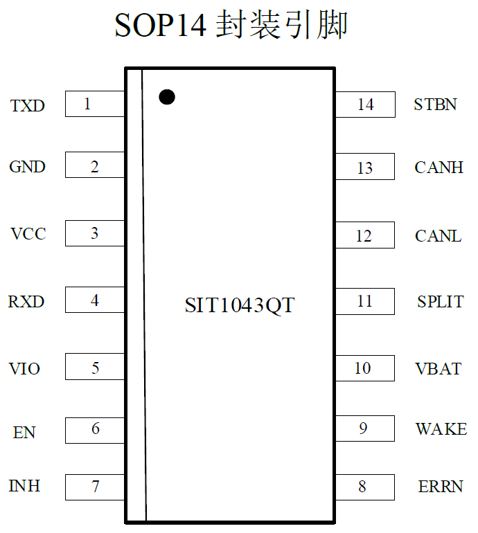 隨著全球變暖,低碳發(fā)展與新能源結(jié)構(gòu)轉(zhuǎn)型成為全球發(fā)展趨勢(shì),在此背景之下促使新能源汽車(chē)持續(xù)釋放。隨著當(dāng)今汽車(chē)電子系統(tǒng)的復(fù)雜性日益增加,對(duì)于電動(dòng)新能源汽車(chē)在不增加汽車(chē)部件成本的基礎(chǔ)上,提升電動(dòng)汽車(chē)的能效及安全性提上日程。在此背景之下,芯力特電子在第一代SIT1040與第二代SIT1042CAN芯片基礎(chǔ)之上,研發(fā)出第三代高速CAN總線收發(fā)器SIT1043Q通信芯片,用以解決車(chē)載CAN通信同時(shí),還實(shí)現(xiàn)CAN網(wǎng)絡(luò)診斷、故障安全保護(hù)、超低功耗睡眠等功能。與此同時(shí)SIT1043Q在電磁兼容(EMC)性能上有顯著提高,獨(dú)立HS-CAN收發(fā)器+低功耗管理+網(wǎng)絡(luò)診斷保護(hù) 解決方案,這使汽車(chē)制造商在提升整車(chē)系統(tǒng)性能、產(chǎn)品質(zhì)量和可靠性的同時(shí),也大大降低了汽車(chē)整個(gè)網(wǎng)絡(luò)的能耗。以下是SIT1043Q芯片引腳分布及功能: