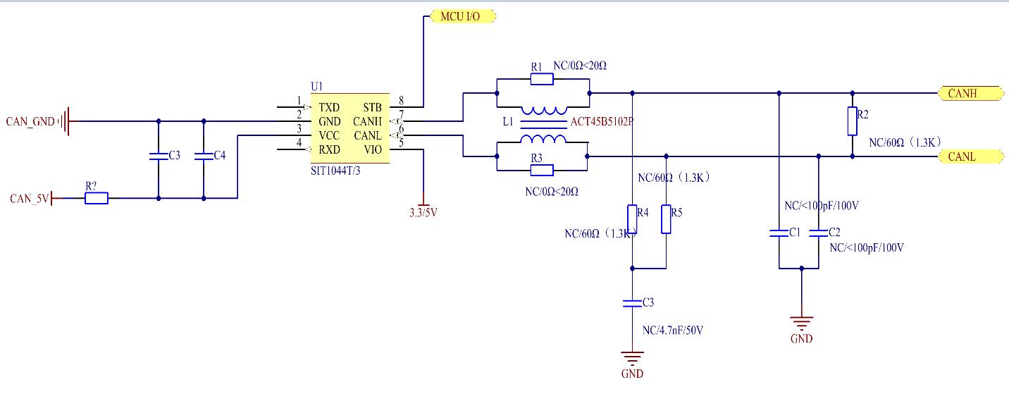 SIT1044T/3型號I/O電壓范圍支持3.3V和5V MCU;