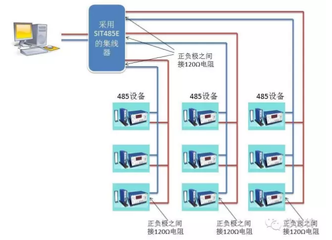 菊花鏈拓撲結(jié)構(gòu)是RS485總線布線的標準及規(guī)范,是TIA等組織推薦使用的RS485總線拓撲結(jié)構(gòu)。